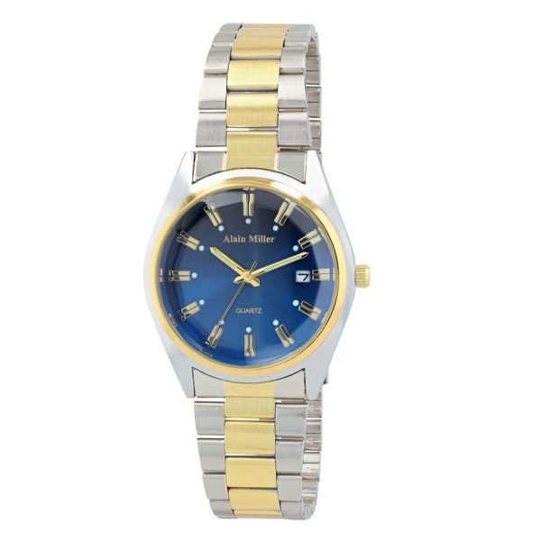 Το δίχρωμο ανδρικό ρολόι Alain Miller ξεχωρίζει για τον συνδυασμό ασημί και χρυσού, που του δίνει premium εμφάνιση χωρίς υπερβολές. Το μπλε καντράν του δημιουργεί μια εντυπωσιακή αντίθεση, ιδανική για άνδρες που θέλουν ένα ρολόι με χαρακτήρα. Το μπρασελέ είναι μεταλλικό, με συνολικό μήκος 23,5 cm και πλάτος 20 mm, προσφέροντας άνετη εφαρμογή στην καθημερινότητα. Αν σου αρέσουν τα ποιοτικά ανδρικά αξεσουάρ, μπορείς να το συνδυάσεις με επιλογές από τη συλλογή ανδρικά κοσμήματα ή με ένα ιδιαίτερο κομμάτι από τα ανδρικά βραχιόλια.