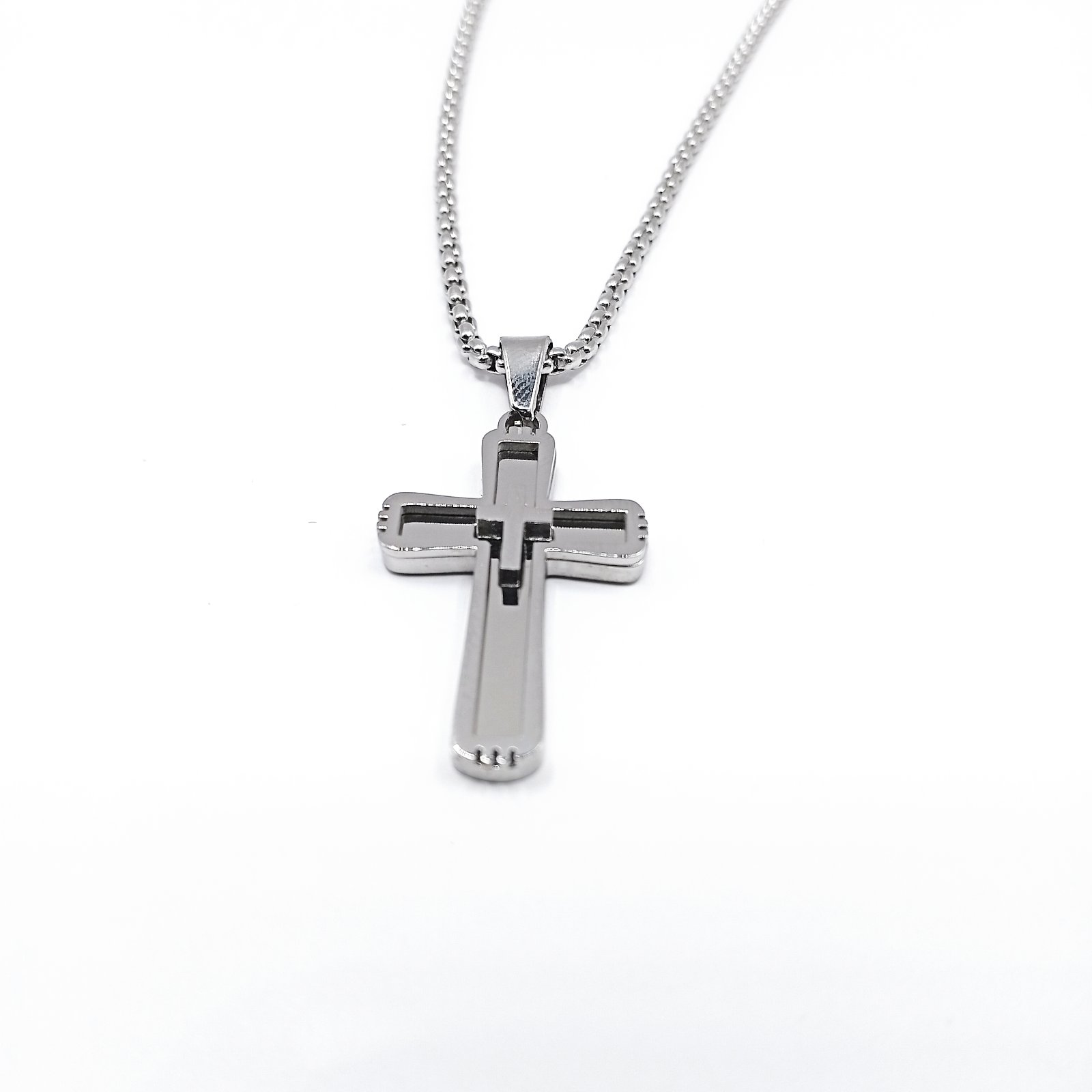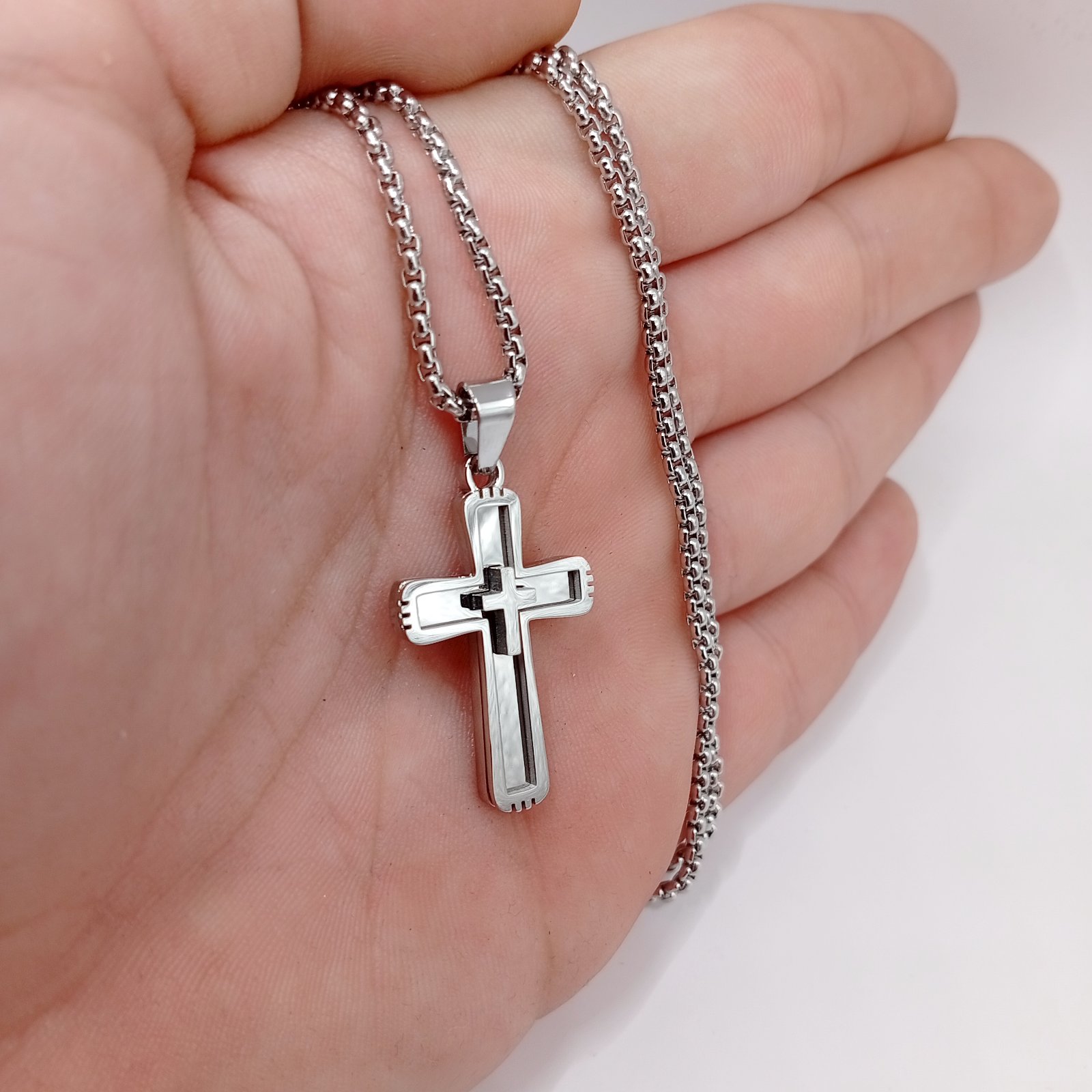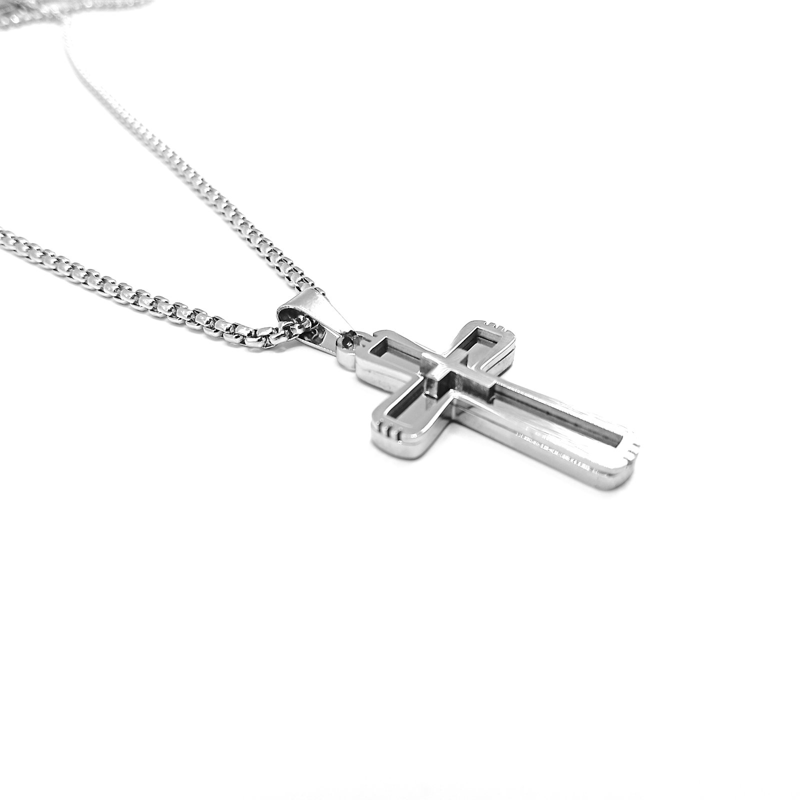 Ο ανδρικός σταυρός 3D είναι ένα εντυπωσιακό κόσμημα που ξεχωρίζει χάρη στον τρισδιάστατο σχεδιασμό του. Η δομή του δημιουργεί ένα όμορφο βάθος με εσωτερικές και εξωτερικές γραμμές που δίνουν πιο μοντέρνο και αρχιτεκτονικό αποτέλεσμα. Το ανοξείδωτο ατσάλι προσφέρει ανθεκτικότητα, σταθερό χρώμα και άνετη καθημερινή χρήση χωρίς να μαυρίζει.