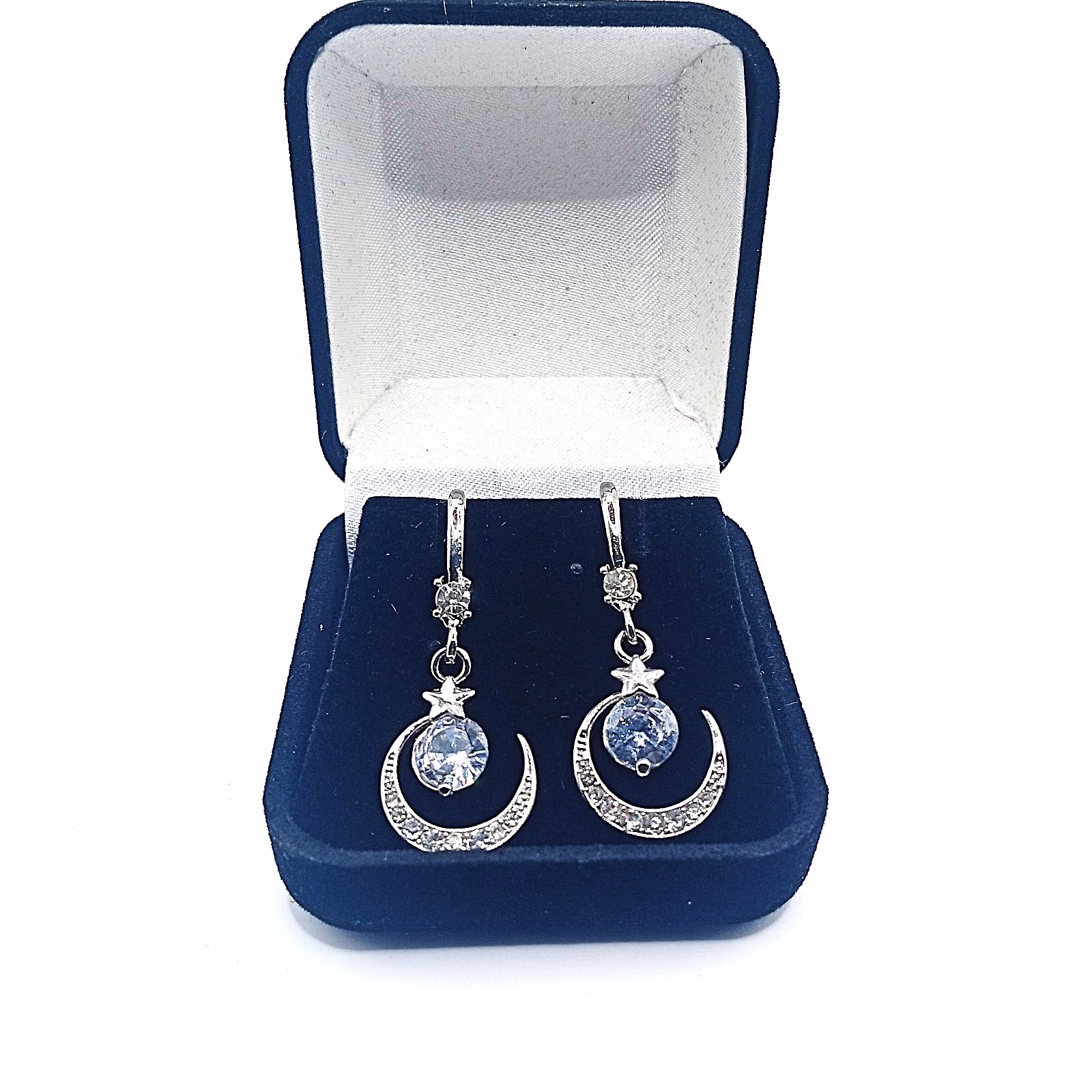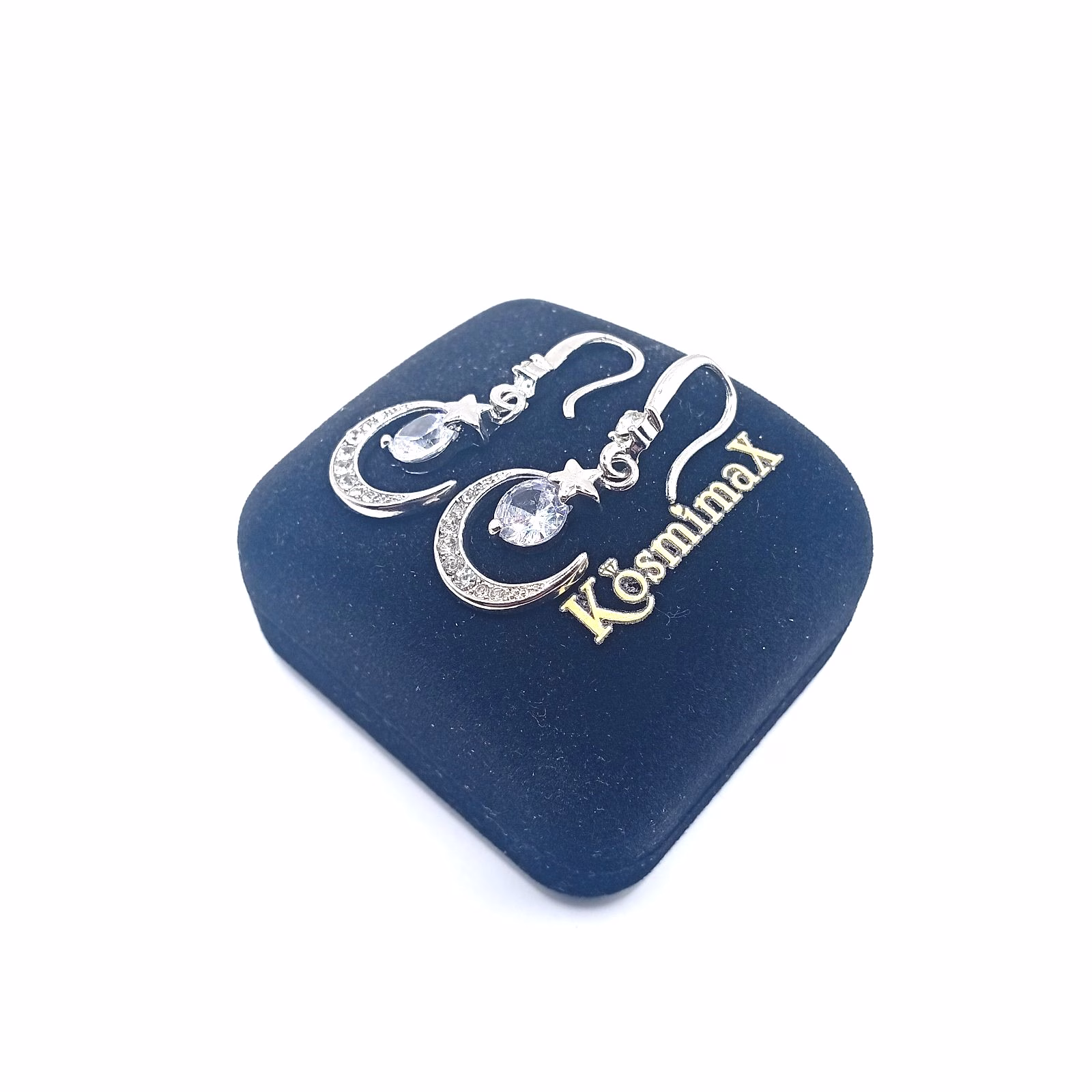 Αυτά τα ασημένια σκουλαρίκια φεγγάρι από ασήμι 925 συνδυάζουν διακριτική λάμψη και συμβολικό σχεδιασμό. Το φεγγάρι αγκαλιάζει μια λαμπερή κεντρική πέτρα, ενώ το κάτω τόξο είναι διακοσμημένο με μικρά ζιρκόν που προσθέτουν επιπλέον φωτεινότητα χωρίς υπερβολή.