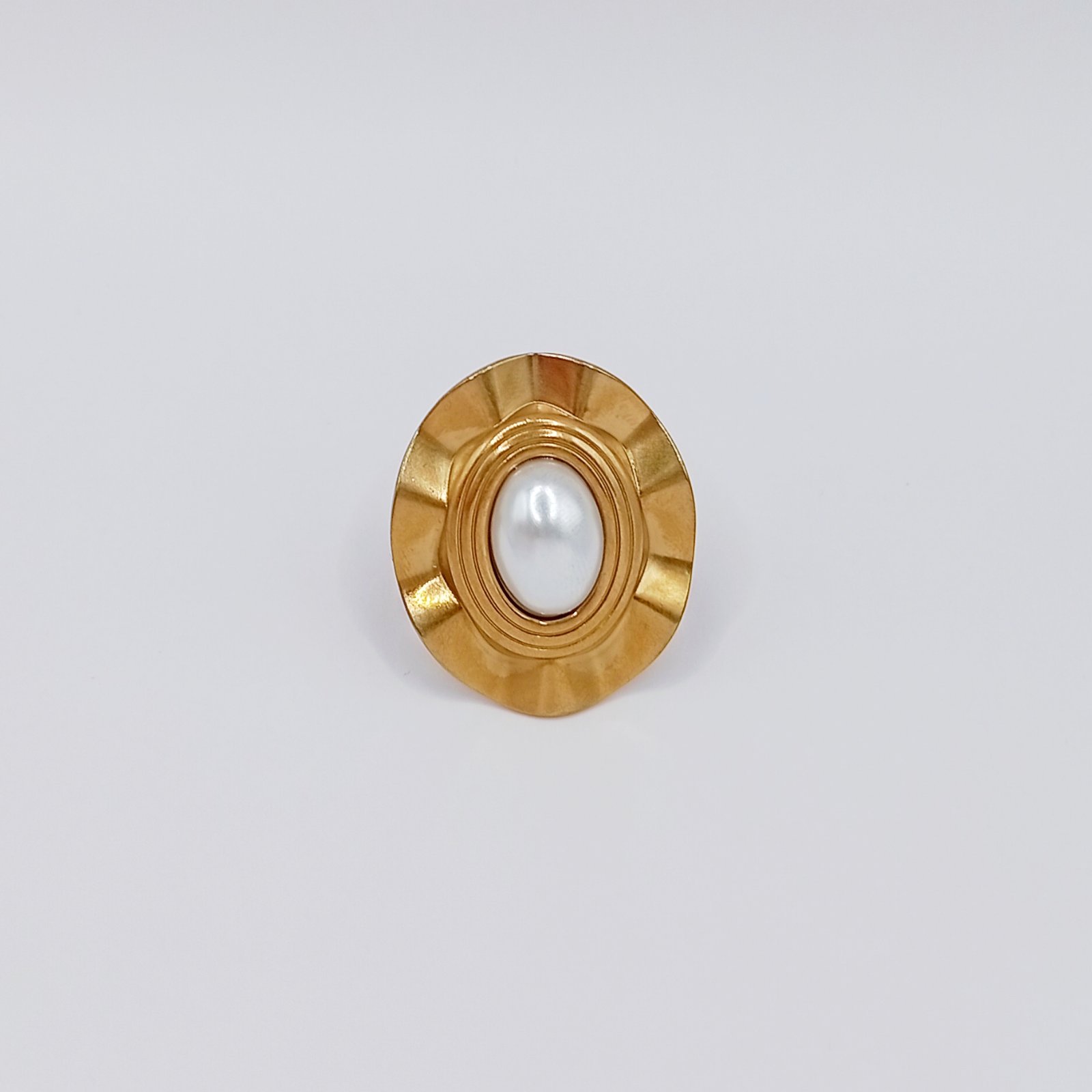 Το ατσάλινο δαχτυλίδι Gold Pearl Wave είναι ένα statement κομμάτι που δίνει αμέσως πιο εκλεπτυσμένη εικόνα στις εμφανίσεις σου. Η μεγάλη κεντρική πέρλα δημιουργεί όμορφη αντίθεση με τη χρυσή μεταλλική βάση, ενώ ο κυματιστός σχεδιασμός γύρω της προσφέρει ένα αποτέλεσμα που θυμίζει κόσμημα υψηλής αισθητικής.