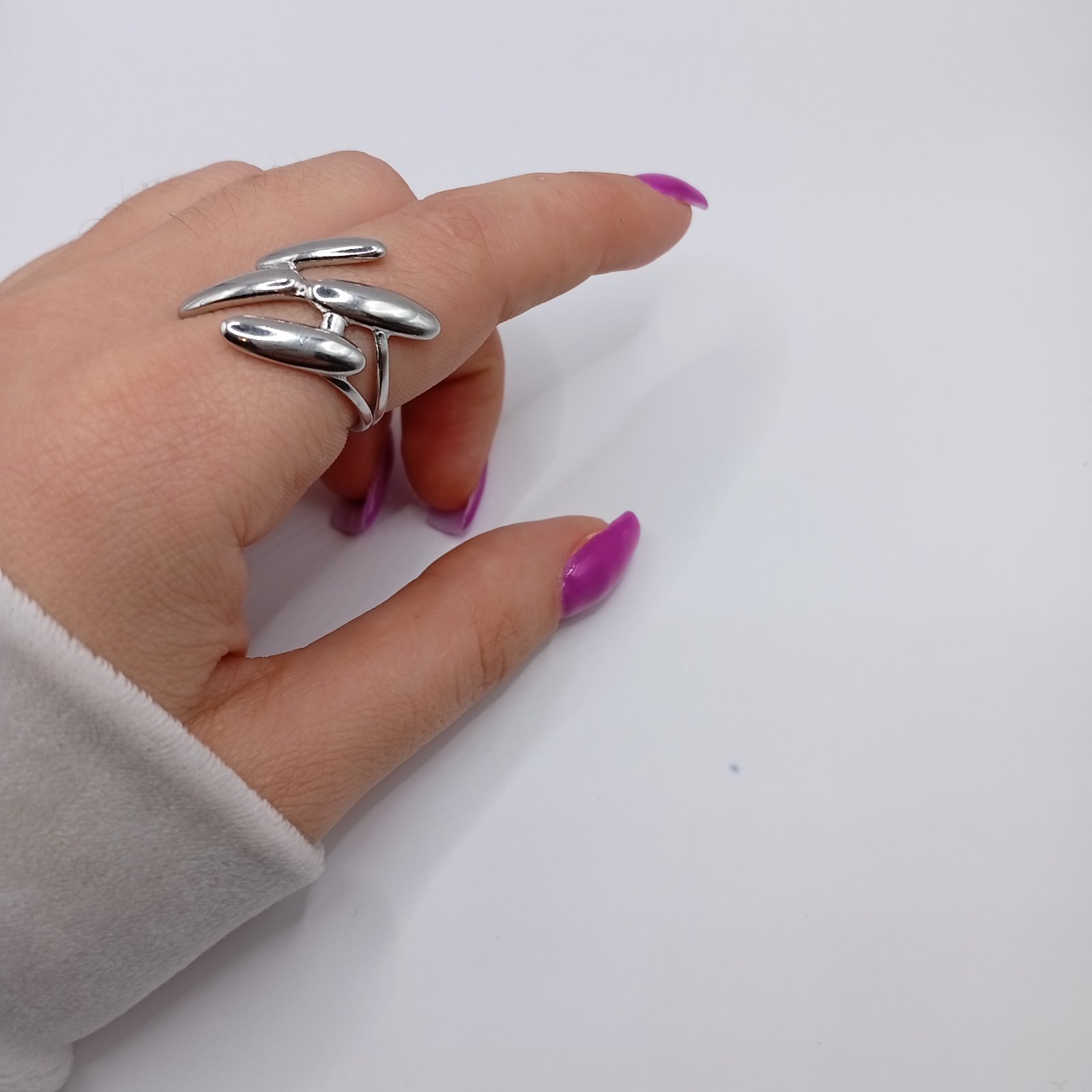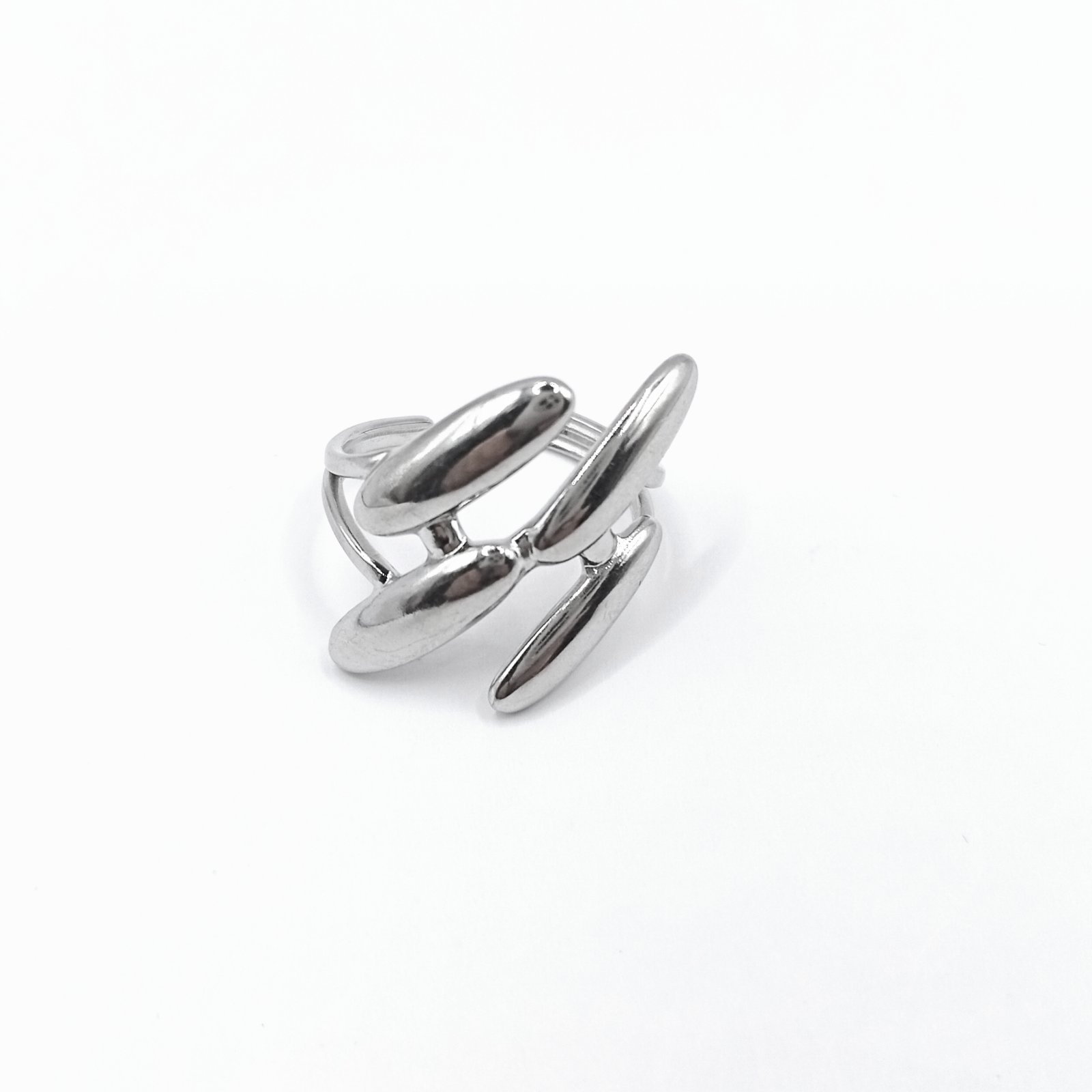 Αυτό το ατσάλινο δαχτυλίδι ξεχωρίζει για τις επιμήκεις καμπύλες του, ένα abstract design που δίνει στο κόσμημα κίνηση και σύγχρονη αισθητική. Οι γυαλιστερές μεταλλικές καμπύλες αγκαλιάζουν όμορφα το δάχτυλο, δημιουργώντας ένα elegant αλλά ταυτόχρονα ιδιαίτερο αποτέλεσμα. Η προσαρμοζόμενη βάση του το κάνει άνετο και ευέλικτο για καθημερινή χρήση.