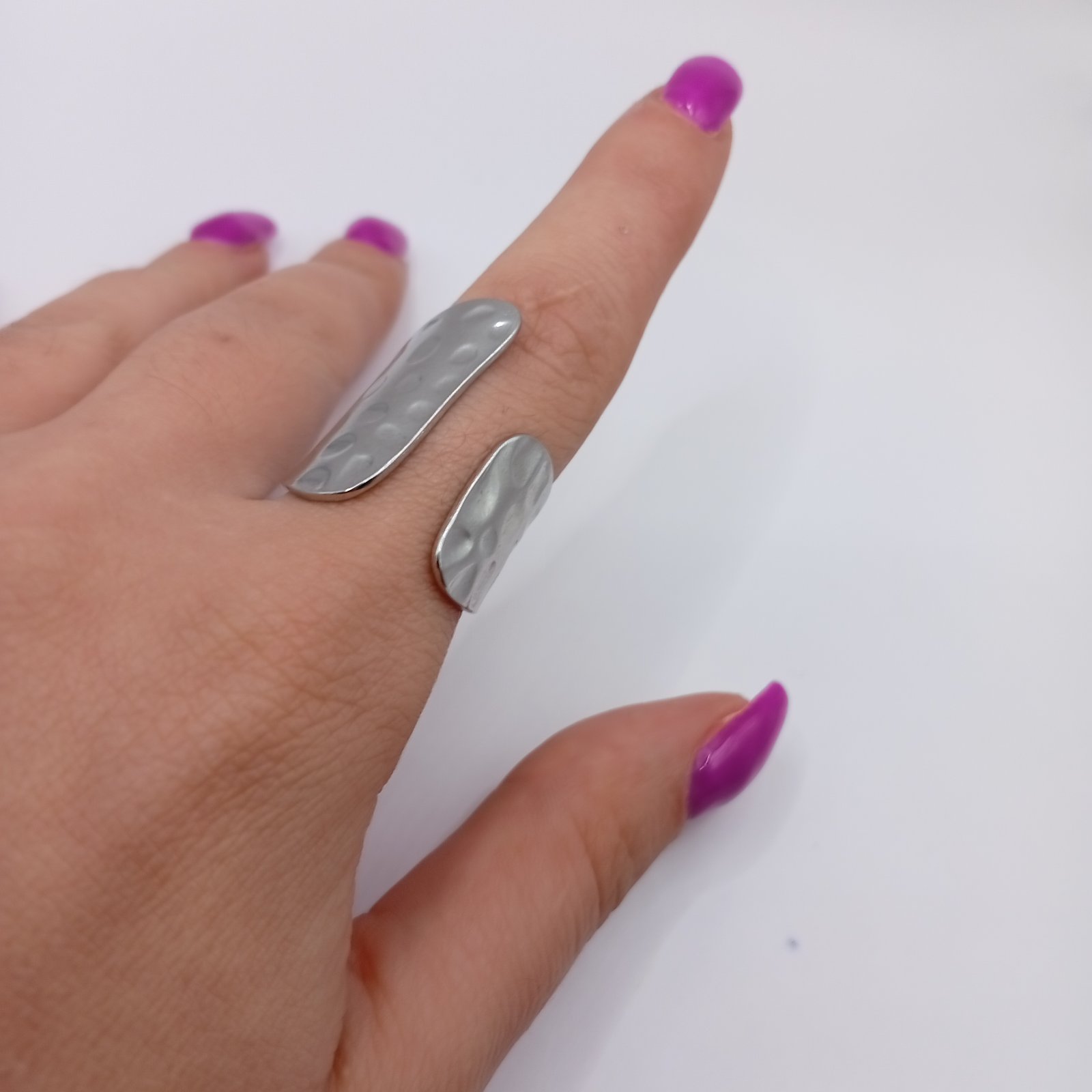 Το ατσάλινο σφυρήλατο δαχτυλίδι είναι η επιλογή που δίνει σε κάθε εμφάνιση μια μοντέρνα και ιδιαίτερη υφή, χάρη στο hammered εφέ του. Η ανοιχτή του σχεδίαση το κάνει άνετο και εύκολο στη χρήση, ενώ συνδυάζεται υπέροχα με άλλα γυναικεία δαχτυλίδια για layered styling ή πιο minimal συνδυασμούς.