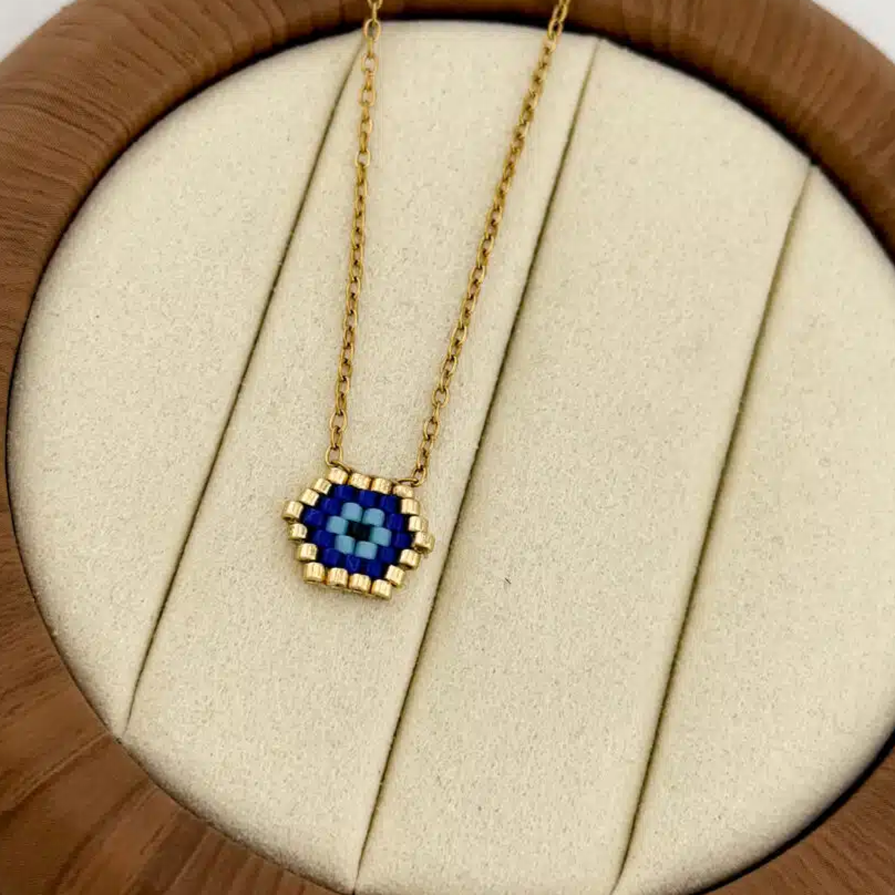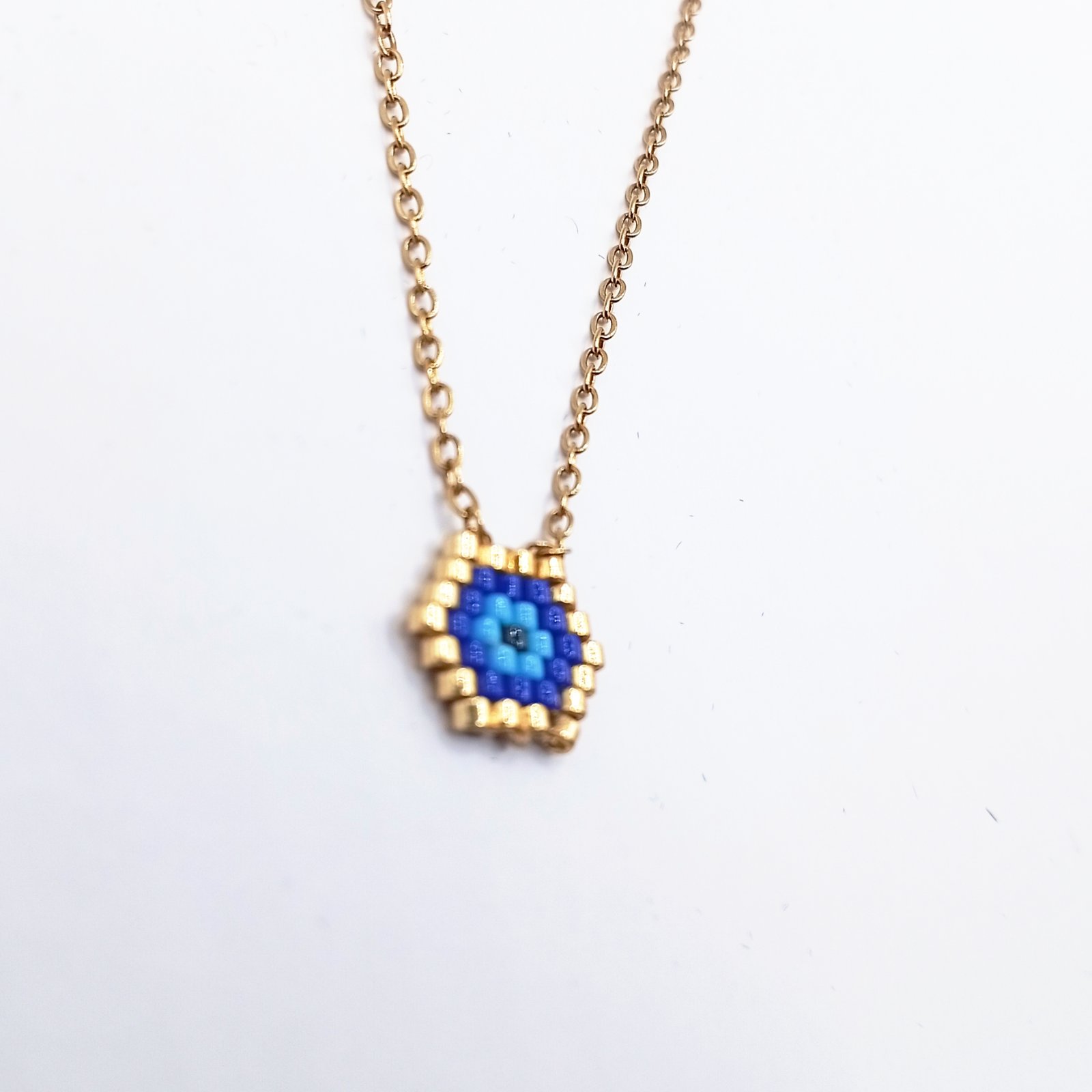 Χειροποίητο Miyuki κολιέ με μπλε ματάκι