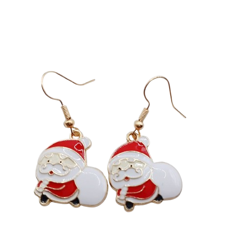 Αυτά τα χριστουγεννιάτικα σκουλαρίκια με τον Άγιο Βασίλη σε ατσάλινους γάντζους είναι μια χαριτωμένη και ζωντανή επιλογή για τις γιορτινές σου εμφανίσεις. Το κρεμαστό στοιχείο σε κόκκινο και λευκό αποτυπώνει μια παιχνιδιάρικη φιγούρα Άγιου Βασίλη, με τις στρογγυλές γραμμές και την τσάντα στο πλάι να δημιουργούν ένα ιδιαίτερα χαριτωμένο design.