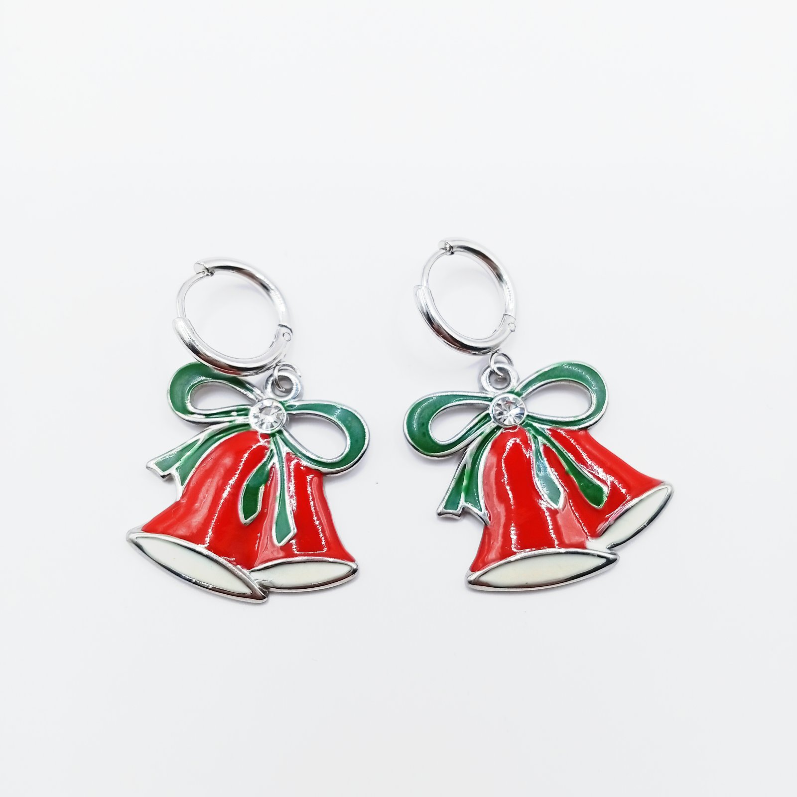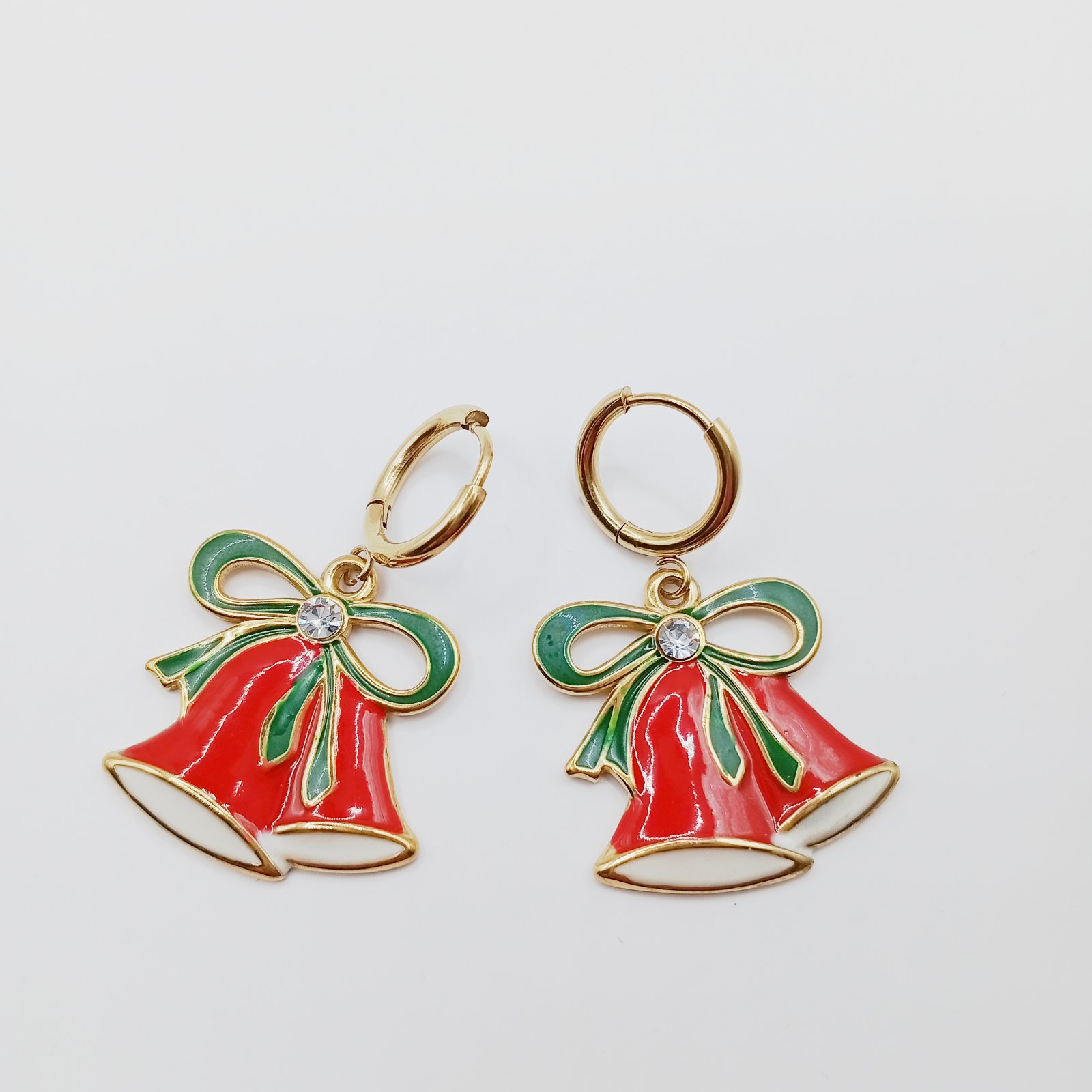 Αυτά τα χριστουγεννιάτικα σκουλαρίκια από ανοξείδωτο ατσάλι προσθέτουν άμεσα λάμψη και γιορτινή διάθεση σε κάθε εμφάνιση. Ο σχεδιασμός τους βασίζεται σε mini hoops με κρεμαστά καμπανάκια, διακοσμημένα με κόκκινες και πράσινες λεπτομέρειες και μια μικρή αστραφτερή πέτρα στο σημείο του φιόγκου. Το αποτέλεσμα είναι χαρούμενο, κομψό και ιδανικό για όλες τις γιορτινές περιστάσεις.