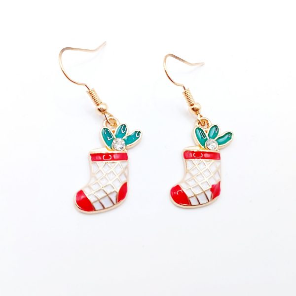 Αυτά τα χριστουγεννιάτικα σκουλαρίκια κάλτσες δώρων σε ατσάλινους γάντζους είναι ένας χαριτωμένος και λαμπερός τρόπος να προσθέσεις γιορτινή διάθεση στο στυλ σου. Το κρεμαστό στοιχείο, διακοσμημένο με κόκκινο, λευκό και πράσινο σμάλτο, θυμίζει τις κλασικές χριστουγεννιάτικες κάλτσες που γεμίζουν με μικρά δώρα και γλυκές εκπλήξεις. Η μικρή λαμπερή πέτρα στο επάνω μέρος προσθέτει μια elegant πινελιά και κάνει το σχέδιο ακόμη πιο ζωντανό και χαρούμενο.