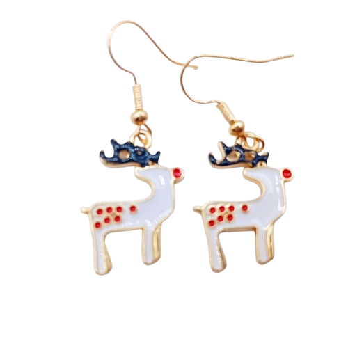 Αυτά τα χριστουγεννιάτικα σκουλαρίκια ταρανδάκια σε ατσάλινους γάντζους είναι μια adorable επιλογή για όσες αγαπούν τα χαριτωμένα γιορτινά σχέδια. Το κρεμαστό στοιχείο είναι διακοσμημένο με λευκό σμάλτο, μικρές κόκκινες λεπτομέρειες και μπλε κέρατα, δημιουργώντας έναν μοναδικό και παιχνιδιάρικο συνδυασμό χρωμάτων που ξεχωρίζει αμέσως.