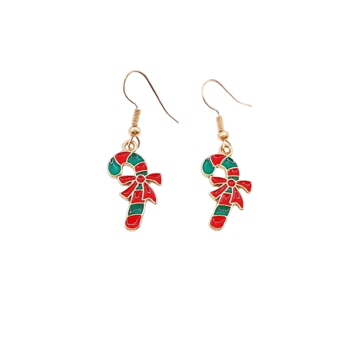 Αυτά τα χριστουγεννιάτικα σκουλαρίκια candy cane σε ατσάλινους γάντζους είναι μια παιχνιδιάρικη και χαρούμενη επιλογή για τη γιορτινή περίοδο. Το κρεμαστό ζαχαρωτό είναι στολισμένο με πράσινες και κόκκινες λεπτομέρειες, ενώ ο μικρός κόκκινος φιόγκος δίνει μια επιπλέον όμορφη και εορταστική πινελιά που τραβάει το βλέμμα.