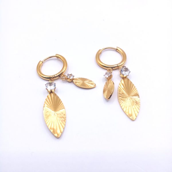Χρυσά κρεμαστά σκουλαρίκια από ανοξείδωτο ατσάλι με φύλλα & ζιρκόν