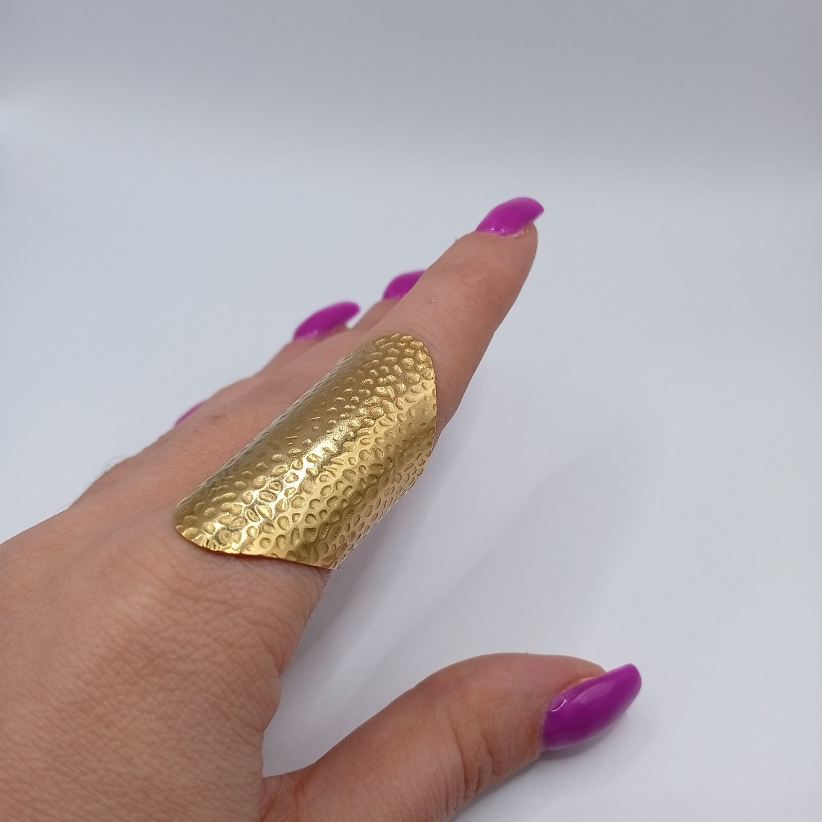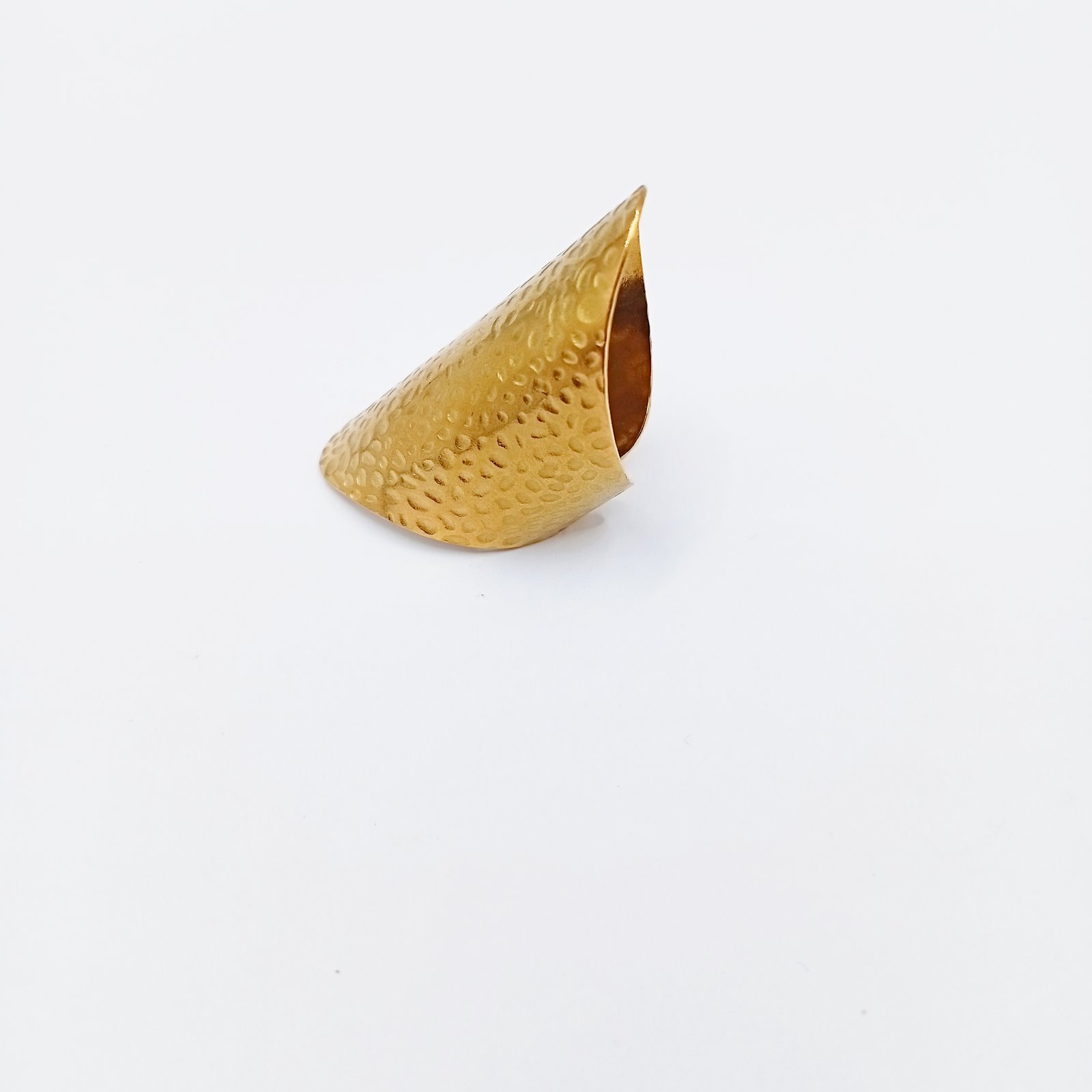 Αυτό το γυναικείο επιχρυσωμένο δαχτυλίδι από ανοξείδωτο ατσάλι ξεχωρίζει για τον statement σχεδιασμό του. Η μακριά, σφυρήλατη επιφάνεια δημιουργεί μια εντυπωσιακή υφή που αντανακλά το φως, προσδίδοντας μοντέρνο και δυναμικό χαρακτήρα σε κάθε look. Είναι μια επιλογή που τραβάει το βλέμμα χωρίς να γίνεται υπερβολική, ιδανική για όσες αγαπούν κοσμήματα που κάνουν αισθητή την παρουσία τους.