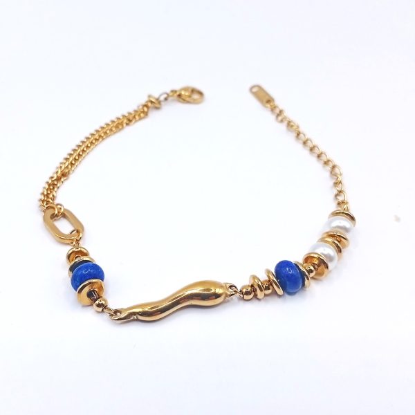 Γυναικείο επιχρυσωμένο βραχιόλι με μπλε & περλέ λεπτομέρειες