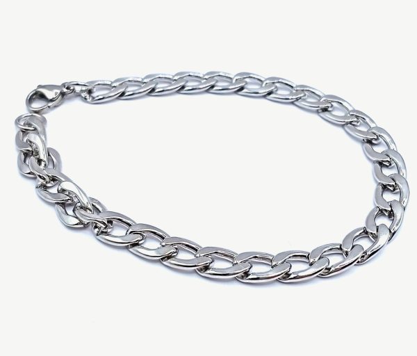 Αναδείξτε το στυλ σας με αυτό το γυναικείο βραχιόλι από ανοξείδωτο ατσάλι, σχεδιασμένο με παχιά, γυαλιστερή αλυσίδα τύπου curb. Το ασημί του χρώμα προσφέρει μια εκλεπτυσμένη λάμψη που ταιριάζει σε κάθε εμφάνιση, από casual έως πιο elegant.