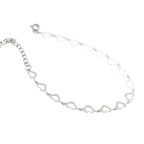 Αυτό το γυναικείο βραχιόλι από ανοξείδωτο ατσάλι ξεχωρίζει για το ρομαντικό του σχέδιο με μικρές καρδιές που ενώνονται μεταξύ τους, δημιουργώντας μια κομψή και παιχνιδιάρικη αλυσίδα. Το ασήμι χρώμα του προσφέρει διακριτική λάμψη και ταιριάζει με κάθε στυλ, από casual έως πιο επίσημες εμφανίσεις.
