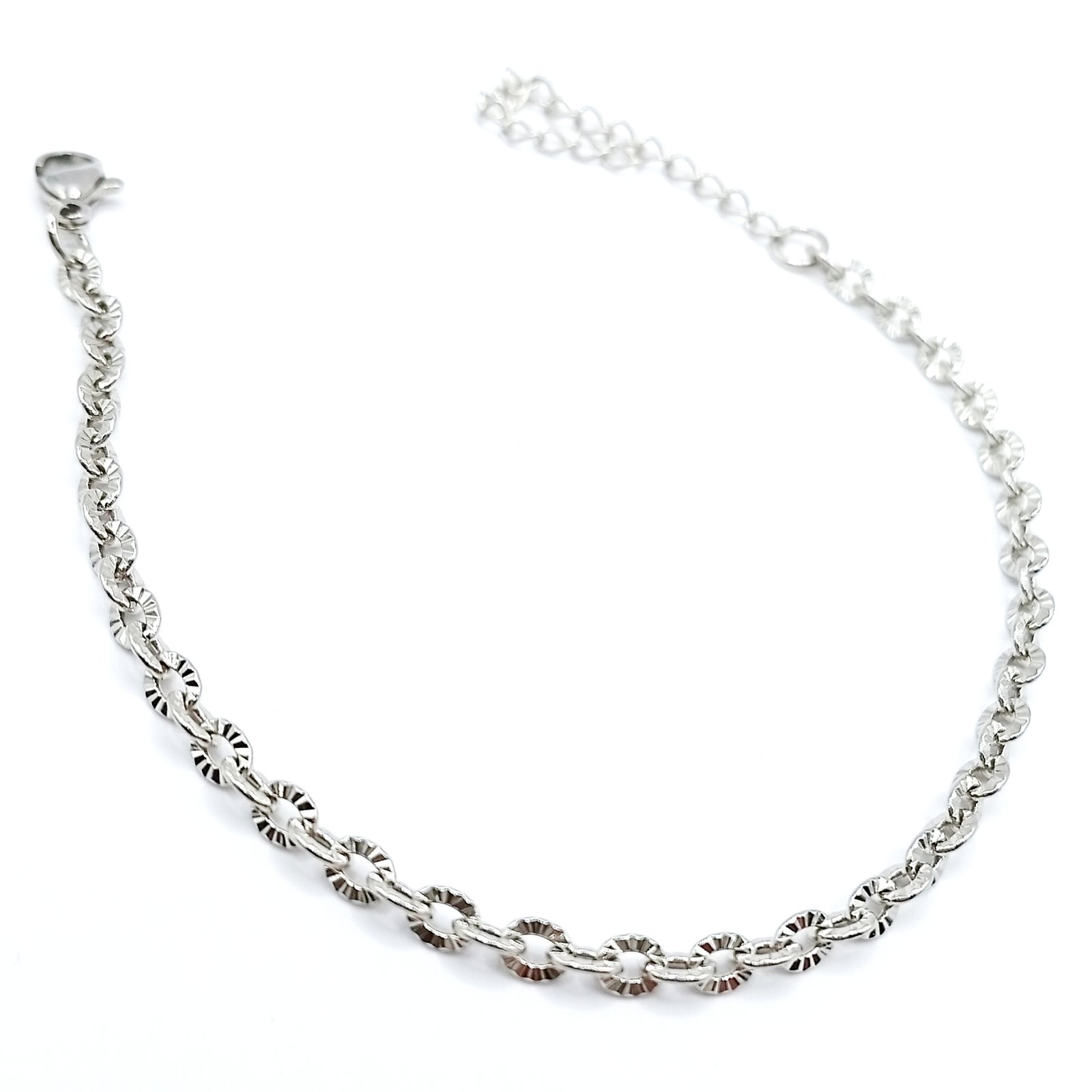 Αυτό το γυναικείο βραχιόλι από ανοξείδωτο ατσάλι διαθέτει αλυσίδα από μικρούς στρογγυλούς κρίκους με διακριτική ανάγλυφη επιφάνεια που χαρίζει ιδιαίτερη λάμψη και υφή. Ο μοντέρνος αλλά ταυτόχρονα διαχρονικός σχεδιασμός του το καθιστά ιδανικό για καθημερινή χρήση αλλά και για πιο επίσημες εμφανίσεις.