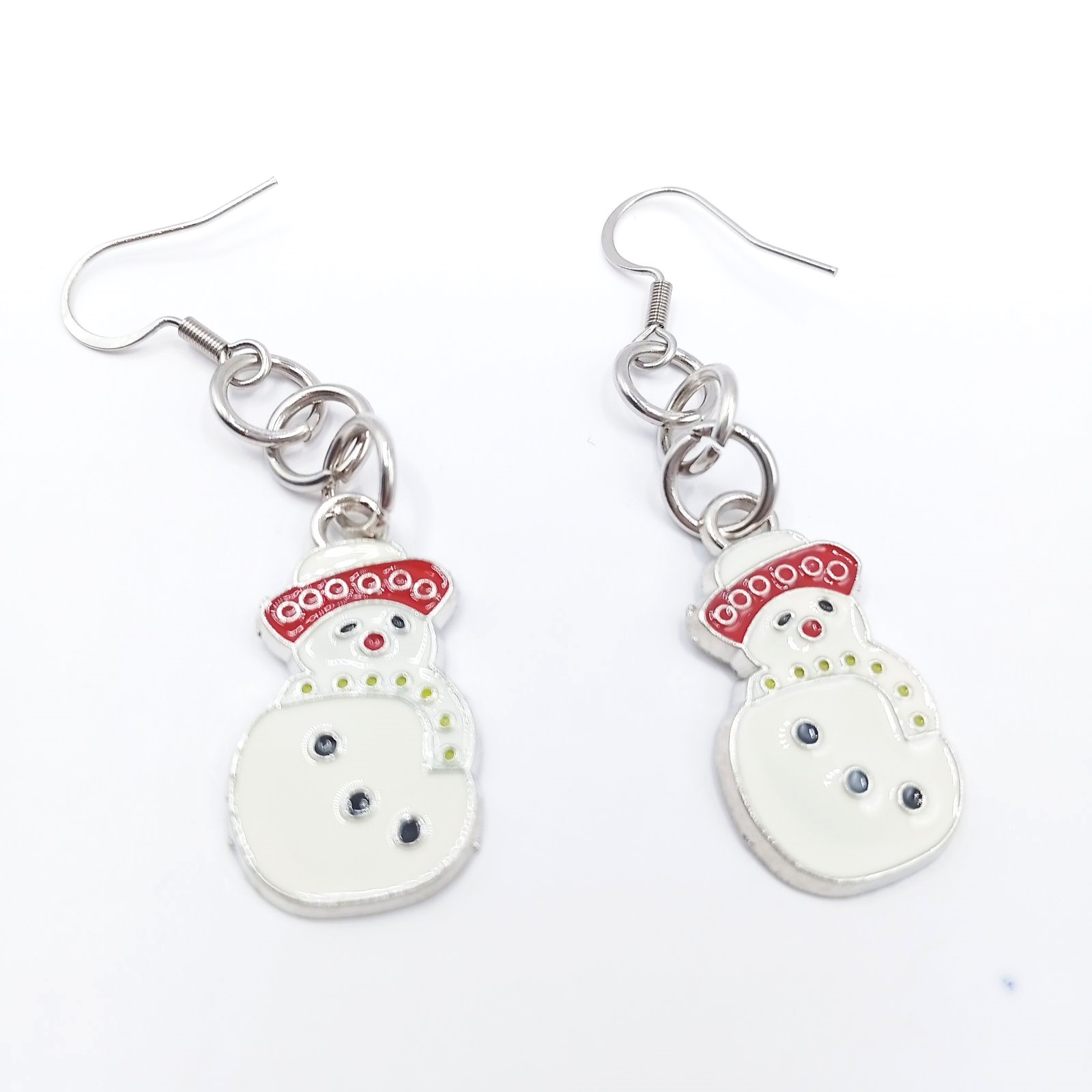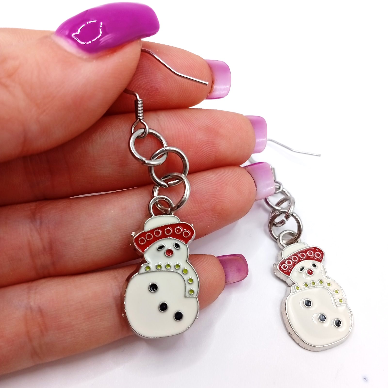 Λαμπερά και παιχνιδιάρικα, αυτά τα χριστουγεννιάτικα σκουλαρίκια με χιονάνθρωπο είναι η πιο γλυκιά επιλογή για τις γιορτές. Το charm από σμάλτο έχει ζωηρά χρώματα, με κόκκινο καπέλο και λεπτομέρειες σε πράσινο και μαύρο, δίνοντας ένα πραγματικά χαρούμενο και γιορτινό look. Οι κρίκοι που συνδέουν το στοιχείο προσθέτουν κίνηση και ελαφριά λάμψη.